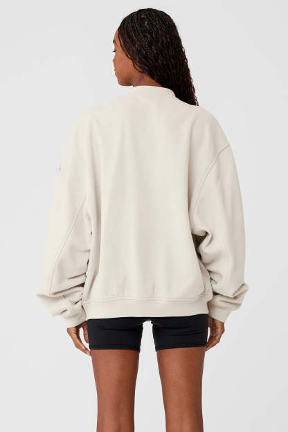 - Designed for an oversized, bomber-style fit with a slightly cropped hem〞size down if you prefer a closer fit