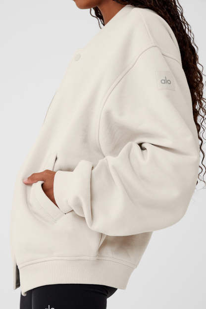 Add a new game-changing layer to your rotation. The Renown Varsity Jacket is made from comfy, heavyweight French terry with drop shoulders, a button front closure, and a smooth look and feel that nails the cool, street-ready vibe. Front slip pockets are handy for storing keys, phone and small essentials on the go.